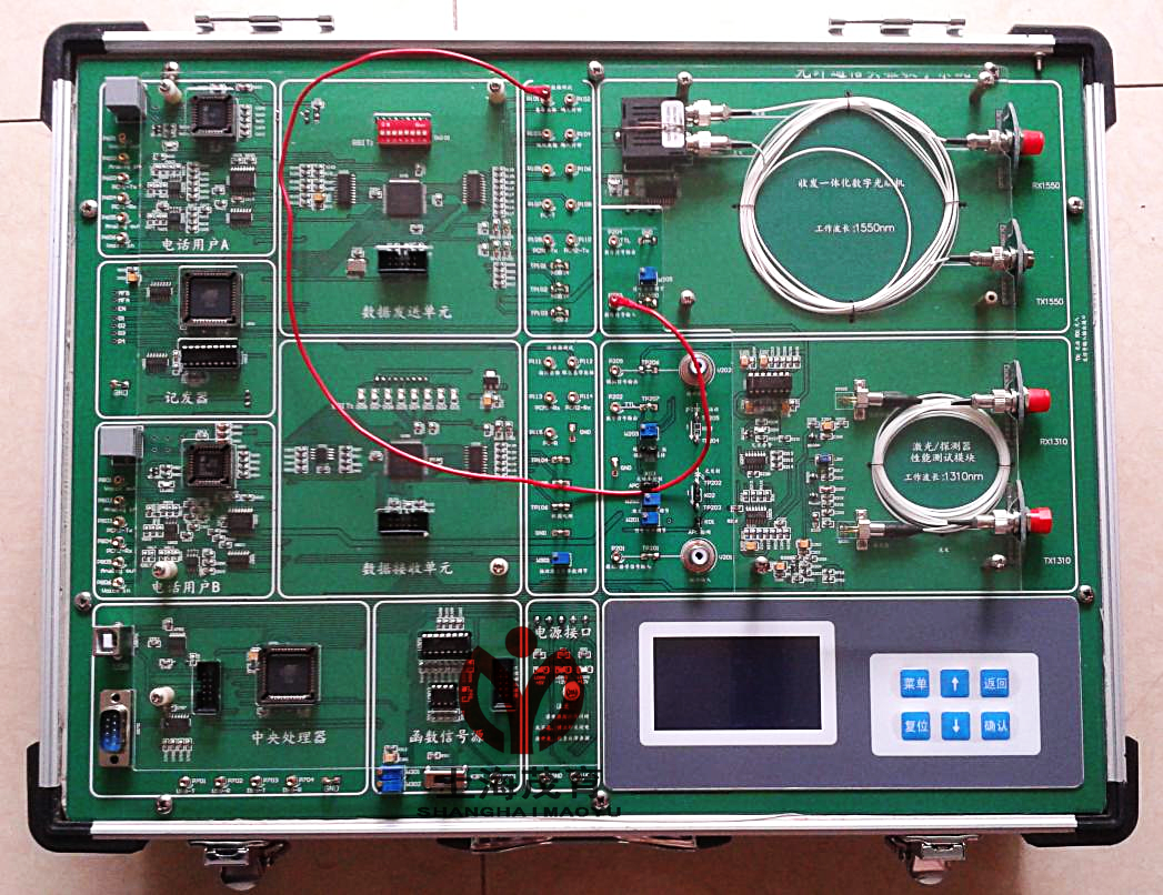 (1) 1310nm光傳輸系統(tǒng)采用激光器和探測器組件獨立組成,非采用光收發(fā)一體機(jī)形式,對學(xué)生掌握光傳輸?shù)碾?--光、光----電原理有很大作用。