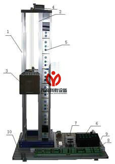 模型由主體框架及導(dǎo)軌、轎箱及門(mén)控系統(tǒng)、配重、驅(qū)動(dòng)電機(jī)、外呼按鈕及顯示屏、內(nèi)選按鈕及指示燈和控制系統(tǒng)組成,結(jié)構(gòu)如圖所示。