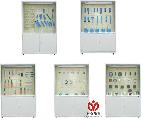 | 第四柜、銑削刀具及應(yīng)用 | 圓柱形銑刀、成形銑刀、角度銑刀、鍵槽銑刀、半圓形銑刀、立銑刀、整體焊接式端銑刀、齒輪銑刀、直齒三面刃盤(pán)銑刀、錯(cuò)齒三面刃盤(pán)銑刀、硬質(zhì)合金端銑刀、銑階臺(tái)、銑特形面( 2 種)、圓柱銑刀銑平面。 |