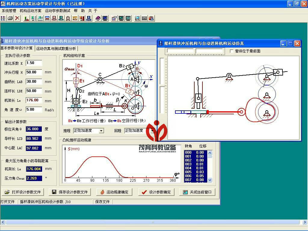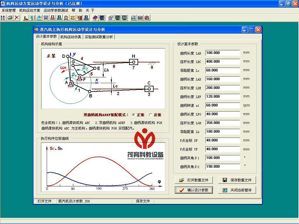 2、軟件界面上可進(jìn)行機(jī)構(gòu)參數(shù)虛擬設(shè)計(jì)、理論仿真、理論相關(guān)參數(shù)設(shè)計(jì)與力學(xué)分析;