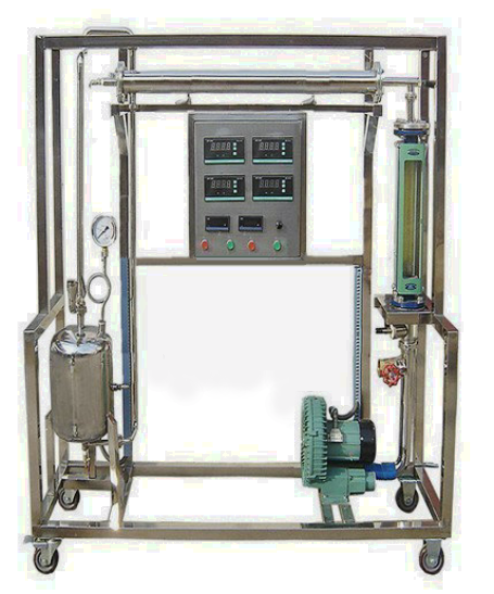 1、普通傳熱管:內(nèi)管內(nèi)徑d=18mm,內(nèi)管外徑De=20mm(紫銅管)。 2、外管內(nèi)徑d=52mm,外管外徑De=57mm(304不銹鋼管),管長1200mm。 3、強化傳熱管:內(nèi)管內(nèi)徑d=18mm,內(nèi)管外徑De=20mm(紫銅管,內(nèi)附螺旋線圈)。 4、外管內(nèi)徑d=52mm,外管外徑De=57mm(304不銹鋼管)管長1200mm。 5、加熱釜:304不銹鋼,加熱功率3.0KW。配帶安全閥。 6、孔板流量計,孔板喉徑:Φ25mm,風壓傳感器0~10KPa。 7、宇電AI704M多路數(shù)字溫度顯示儀。 8、宇電AI702M多路數(shù)字溫度顯示儀。 9、宇電AI501壓差數(shù)字顯示儀。 10、宇電AI518溫度控制儀(帶手動功能)。 11、K型熱電偶溫度傳感器7支。 12、鼓風機:旋渦氣泵,功率 550W,最大流量70m3/h。 13、電器:接觸器、開關(guān)、漏電保護空氣開關(guān)。 14、304不銹鋼管路、管件及閥門。 15、304不銹鋼儀表柜:測控、電器設(shè)備在實驗架上。 16、304不銹鋼材質(zhì)框架1800*500*1800mm(長×寬×高), 帶腳輪及禁錮腳。 |