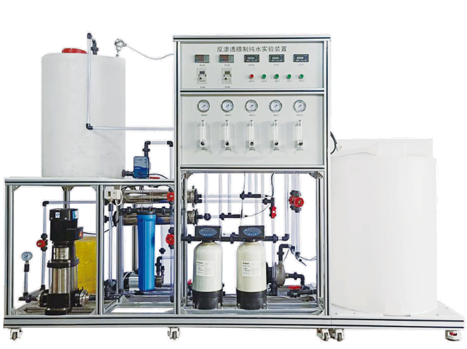 1、反滲透膜組件:雙級低壓反滲透膜,帶不銹鋼外殼。純水通量≥50L/h,脫鹽率≥98%;常壓~1.0MPa,進(jìn)水pH值:3.0~12,最高進(jìn)水溫度45℃。 2、φ200*450mm玻璃鋼罐活性炭過濾器,帶自動多功能控制閥和濾料、布水器。 3、φ200*450mm玻璃鋼罐石英砂過濾器,帶自動多功能控制閥和濾料、布水器。 4、預(yù)過濾器:20英寸粗濾器,內(nèi)裝5μm微孔膜折疊濾芯,數(shù)量1個。 5、加藥泵:隔膜計量泵加入阻垢劑,40L圓形塑料PE黃色加藥箱。 6、反滲透動力系統(tǒng):不銹鋼多級立式高壓離心泵,功率:0.75KW,流量:2.5m3/h,揚程100m。 7、預(yù)處理增壓動力系統(tǒng)為不銹鋼離心泵:流量范圍4.5 m3/h,揚程25m,功率0.55KW 。 8、原料儲槽:容積≥300L,材質(zhì)為工程加厚PE;純水箱:容積100L,材質(zhì)為透明有機(jī)玻璃;濃水箱:容積100L,材質(zhì)為工程加厚PE。 9、壓力就地顯示:防震指針式壓力表,量程0~1.0MPa和0~0.6MPa。 10、轉(zhuǎn)子流量計:原水流量40~400L/h,淡水流量16-160L/h,濃水流量16-160L/h。 11、電導(dǎo)儀:0~2000μs/cm,在線檢測純水電導(dǎo)率。 12、管路:透明,壁厚≥2.0mm,透明可視材質(zhì)。 13、壓力開關(guān):0~0.6MPa,低壓保護(hù),延時保護(hù)。 14、電壓:380V,總功率:3kW。 15、正泰電器:接觸器、帶燈開關(guān)、漏電保護(hù)空氣開關(guān)。 16、外形尺寸:2000×550×2000mm(長×寬×高),外形為可移動式設(shè)計,帶剎車輪,高品質(zhì)鋁合金型材框架,無焊接點,安裝拆卸方便,水平調(diào)節(jié)支撐型腳輪。 17、工程化標(biāo)識:包含設(shè)備位號、管路流向箭頭及標(biāo)識、閥門位號等工程化設(shè)備理念配套,使學(xué)生處于安全的實驗操作環(huán)境中,學(xué)會工程化管路標(biāo)識認(rèn)知,培養(yǎng)學(xué)生工程化理念。 |