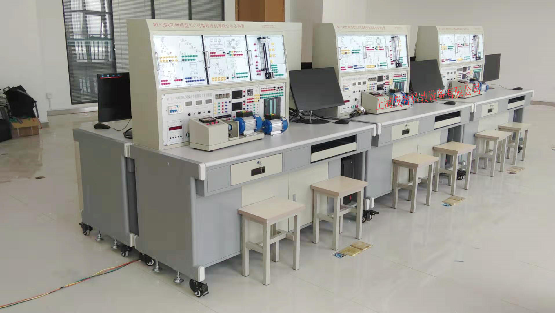 MY-29A PLC可編程控制器.變頻調(diào)速及電氣控制實驗裝置是專為目前各院校開設(shè)的《可編程控制器技術(shù)》、《可編程控制器及其應(yīng)用》等課程實驗配套設(shè)計的,集PLC編程控制器、變頻控制、工控組態(tài)軟件、仿真教學(xué)軟件、實驗掛箱(變頻器控制、觸摸屏控制等)、實物與于一體,綜合性強、功能齊全,做到一機多用、資源共享、便于管理,大大節(jié)省實驗室?赏瓿蓡纹瑱C、PLC編程控制器、變頻調(diào)速技術(shù)課程的相關(guān)教學(xué)實訓(xùn)。是大中院校及中職理想的實驗設(shè)備。