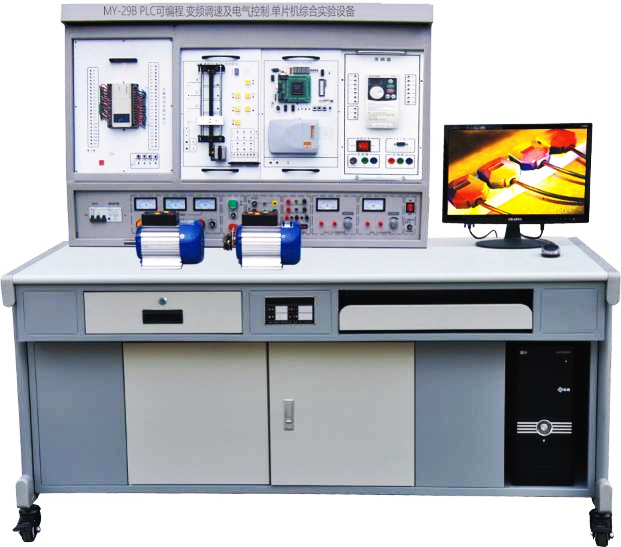 MY-29B 網(wǎng)絡(luò)型PLC可編程控制器、變頻調(diào)速、電氣控制及單片機(jī)實(shí)驗(yàn)開(kāi)發(fā)系統(tǒng)綜合實(shí)訓(xùn)裝置集單片機(jī)、變頻控制、PLC編程邏輯控制器、工控組態(tài)軟件、仿真教學(xué)軟件、模擬控制實(shí)訓(xùn)掛箱、實(shí)物與于一體,綜合性強(qiáng)、功能齊全,做到一機(jī)多用、資源共享、便于管理,大大節(jié)省實(shí)驗(yàn)室。可完成單片機(jī)、PLC編程控制器、變頻調(diào)速技術(shù)課程的相關(guān)教學(xué)實(shí)訓(xùn)。是大中院校及中職理想的實(shí)驗(yàn)設(shè)備。