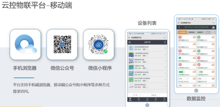 用戶通過PC端瀏覽器、移動端瀏覽器、微信公眾號、微信小程序等多種方式可以直觀查看設(shè)備的運行數(shù)據(jù)和實時曲線。