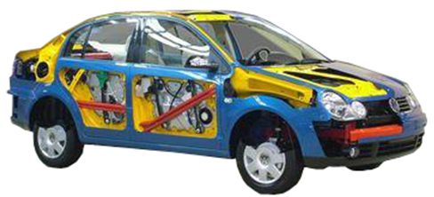 汽車整車解剖模型多功能解剖車選用桑塔納2000為基礎(chǔ),可容易地看見發(fā)動(dòng)機(jī)艙、車身側(cè)圍的構(gòu)造結(jié)構(gòu)、鋼板的厚度及獨(dú)立懸掛的結(jié)構(gòu),甚至車輪的輪轂及輪胎的橫截面。此外,車內(nèi)方向盤、排擋桿、手剎、安全帶固定裝置及安全帶卷等平時(shí)都被包裹嚴(yán)實(shí)的部件也被特別地一剖為二,內(nèi)部工藝精度、構(gòu)造清晰呈現(xiàn),能夠展示汽車各總成裝置以及各附件位置。