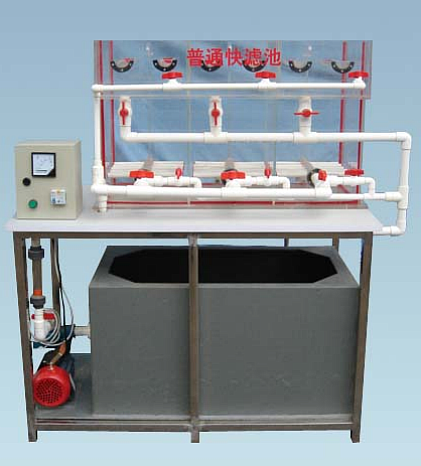 1、快濾池池體:透明有機(jī)玻璃材質(zhì)、厚度10mm,包含大阻力配水系統(tǒng)、承托層、濾料層和排水槽、進(jìn)出水管道和閥門,反沖洗進(jìn)出水管道和閥門等;