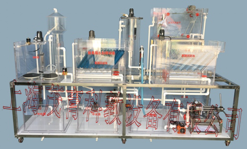 觸摸屏控制、也可以手動、在線監(jiān)測儀(PH儀和DO儀),監(jiān)控等組成,供水系統(tǒng):主要由水箱、不銹鋼支架、水箱液位管和球鬧等組成。污水處理系統(tǒng):裝置對象設備整體采用不銹鋼框架進行設計,主要動力系統(tǒng)器件安裝在鋼架上,主要有機玻璃反應器合理的布置安裝在不銹鋼鋼架的上層。下層動力系統(tǒng)主要由水泵、風機、中水池裝置等組成。有機玻璃反應器系統(tǒng)主要由有機玻璃平流式沉淀池、CSTR池、輻流式沉淀池、UASB池、SBR池、絮凝沉淀池、消毒池、固液分離機、有機玻璃中和池等組成。曝氣系統(tǒng)主要由風機、曝氣管、攪拌機、流量計和管道等組成,在線監(jiān)測系統(tǒng)主要由DO在線儀、PH在線儀、浮球液位開關等組成。