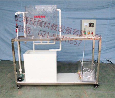 給水處理中澄清工藝通常包括混凝、沉淀和過濾,處理對象主要是水中懸浮物和膠體雜質。原水加藥后,經(jīng)混凝使水中懸浮物和膠體形成大顆粒絮凝體,而后通過沉淀池進行重力分離。折板絮凝池就是混凝、絮凝沉淀兩種功能的凈水構筑物。本模型就是展示絮凝反應池和折板絮凝池內部構造的實驗裝置。