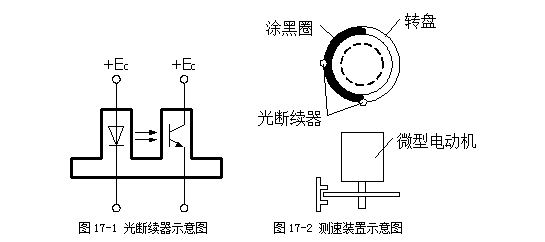 1、光斷續(xù)器原理如圖17-1所示,一個開口的光耦合器,當(dāng)開口處被遮住時,光敏三極管接收不到發(fā)光二極管的光信號,輸出電壓為0,否則有電壓輸出。