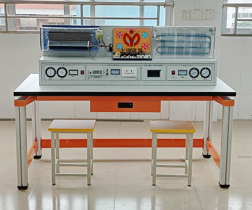 本裝置是專門為職業(yè)院校制冷類相關(guān)專業(yè)而研制的實(shí)訓(xùn)裝置,根據(jù)制冷類行業(yè)中空調(diào)與冰箱維修技術(shù)的特點(diǎn),針對空調(diào)的電氣控制以及制冷系統(tǒng)的安裝與維修進(jìn)行設(shè)計,強(qiáng)化了學(xué)生對空調(diào)冰箱系統(tǒng)管路的安裝、電氣接線、工況調(diào)試、故障診斷與維修等綜合職業(yè)能力。裝置融合了流體力學(xué)、熱力學(xué)、傳熱學(xué)和電氣控制等技術(shù),集制冷空調(diào)系統(tǒng)安裝。