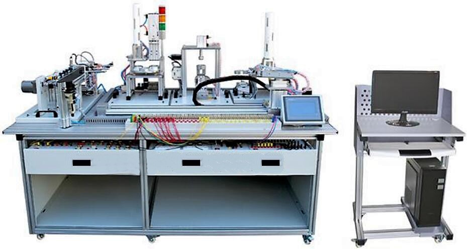 實訓裝置由由鋁合金導軌式實訓臺、典型的機電一體化設備的機械部件、PLC模塊、變頻器模塊、按鈕模塊、電源模塊、模擬生產(chǎn)設備實訓模塊、接線端子排和各種傳感器、計算機等組成。整體結(jié)構(gòu)采用開放式和拆裝式,實訓裝置用于機械部件組裝,可根據(jù)現(xiàn)有的機械部件組裝生產(chǎn)設備,也可添加機械部件組裝其他生產(chǎn)設備,使整個裝置能夠靈活的按教學或競賽要求組裝具有生產(chǎn)功能的機電一體化設備。模塊采用標準結(jié)構(gòu)和抽屜式模塊放置架,互換性強;按具有生產(chǎn)性功能和整合學習功能的原則確定模塊內(nèi)容,使教學或競賽時可方便的選擇需要的模塊。設備需完全符合電工電子全國職業(yè)技能大賽所要求,同時還要求具有可拓展功能,可以組成更加大型的生產(chǎn)模擬系統(tǒng),以配合各個用戶學校不同層次,不同專業(yè)的教學及培訓要求。