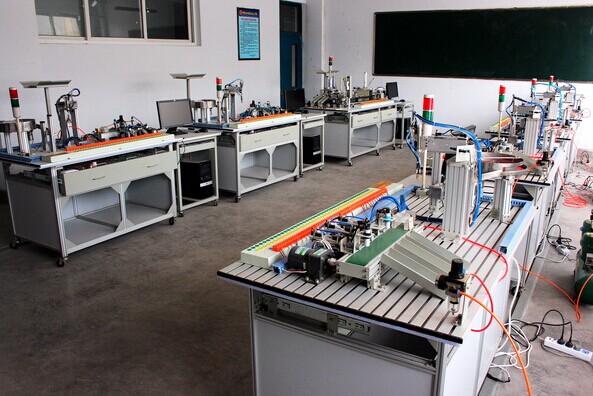光機(jī)電一體化實(shí)訓(xùn)設(shè)備是根據(jù)職業(yè)教育培訓(xùn)教材編寫《機(jī)電一體化專業(yè)》相關(guān)的技能培訓(xùn)要求而研制的,結(jié)合當(dāng)前工業(yè)自動(dòng)化應(yīng)用技術(shù)及器件技術(shù)的發(fā)展,充分考慮實(shí)用性、先進(jìn)性。根據(jù)任務(wù)引領(lǐng)式行為導(dǎo)向教學(xué)法,以重點(diǎn)培養(yǎng)學(xué)生的動(dòng)手實(shí)操能力,團(tuán)隊(duì)協(xié)作能力,創(chuàng)新能力。該實(shí)訓(xùn)裝置由鋁合金導(dǎo)軌式實(shí)訓(xùn)臺(tái)、典型的機(jī)電一體化設(shè)備的機(jī)械部件、PLC模塊、變頻器模塊、步進(jìn)電機(jī)(或伺服電機(jī))模塊、按鈕模塊、電源模塊、模擬生產(chǎn)設(shè)備實(shí)訓(xùn)模塊、接線端子排和各種傳感器、計(jì)算機(jī)等組成。整體結(jié)構(gòu)采用開放式和拆裝式,實(shí)訓(xùn)裝置用于機(jī)械部件組裝,可根據(jù)現(xiàn)有的機(jī)械部件組裝生產(chǎn)設(shè)備,也可添加機(jī)械部件組裝其他生產(chǎn)設(shè)備,使整個(gè)裝置能夠靈活的按教學(xué)或技能競賽要求組裝,具有生產(chǎn)功能的機(jī)電一體化設(shè)備。同時(shí)還要求具有可拓展功能,可以組成更加大型的生產(chǎn)模擬系統(tǒng),以配合各個(gè)用戶學(xué)校不同層次,不同專業(yè)的教學(xué)及培訓(xùn)要求。