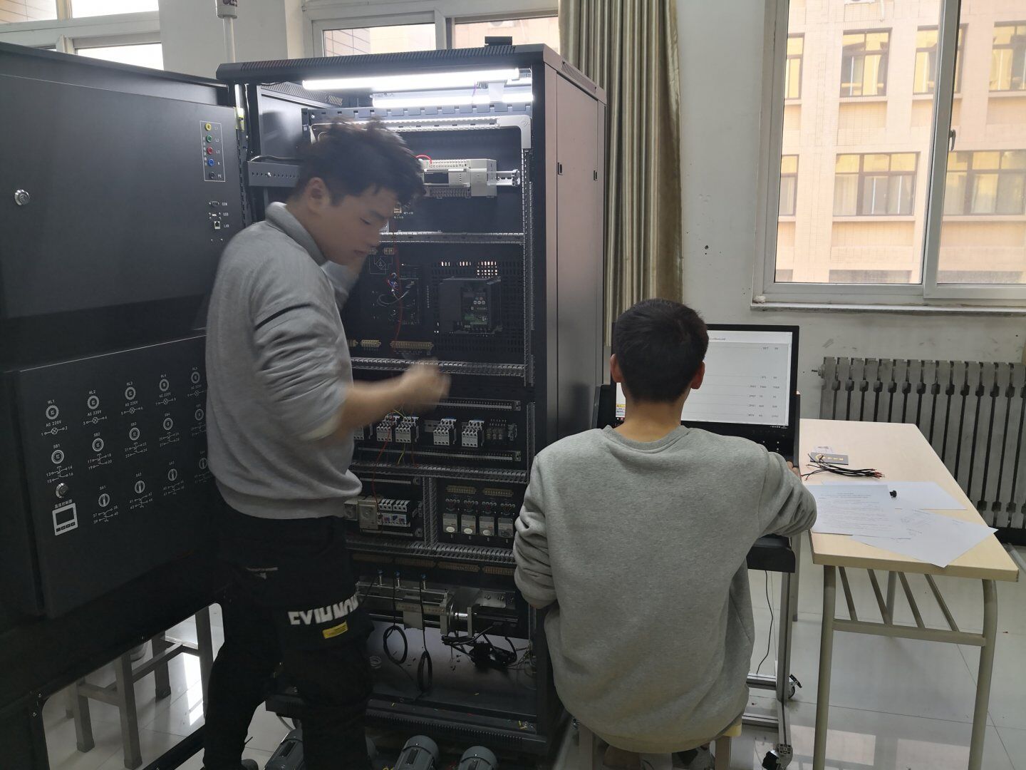 現(xiàn)代電氣控制技術(shù)實(shí)訓(xùn)室是機(jī)電一體化技術(shù)、機(jī)械制造與自動化、精密醫(yī)療器械技術(shù)、制藥設(shè)備應(yīng)用技術(shù)等專業(yè)進(jìn)行現(xiàn)代電氣控制系統(tǒng)安裝與調(diào)試實(shí)訓(xùn)實(shí)習(xí)的綜合實(shí)訓(xùn)室,在電動機(jī)的多段速控制、基于模擬量的電機(jī)開環(huán)調(diào)速、步進(jìn)電機(jī)、交流伺服電機(jī)的位置控制、三菱Q系列PLC與FX系列PLC網(wǎng)絡(luò)通信訓(xùn)練的基礎(chǔ)上,完成混料罐、標(biāo)簽打印、灌裝貼標(biāo)簽、動車空調(diào)、立體倉庫、定長切料、平面?zhèn)}庫、自動抓棉機(jī)、伺服灌裝機(jī)、智能飼喂、太陽能制冷、自動涂裝系統(tǒng)、倉庫分揀系統(tǒng)、智能立體車庫系統(tǒng)、數(shù)控加工中心系統(tǒng)控制等綜合項(xiàng)目的設(shè)計(jì)實(shí)施,培養(yǎng)現(xiàn)代電氣控制系統(tǒng)安裝調(diào)試方面的綜合能力。同時(shí),能夠?yàn)閹熒M(jìn)行自動化技術(shù)方面的科技創(chuàng)新、技術(shù)研發(fā)及技能大賽訓(xùn)練服務(wù)。本實(shí)訓(xùn)臺還承擔(dān)現(xiàn)代電氣控制安裝與調(diào)試技術(shù)能大賽省賽和國賽的訓(xùn)練任務(wù)以及現(xiàn)代電氣控制技術(shù)創(chuàng)新小組的日常訓(xùn)練任務(wù)。