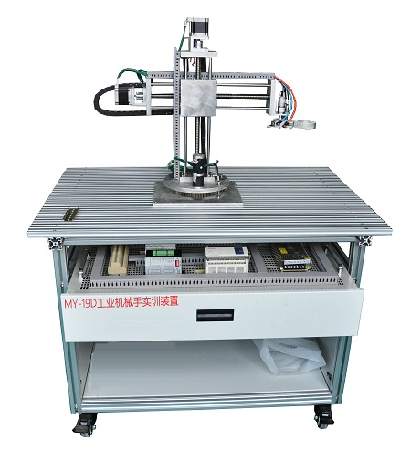 工業(yè)機(jī)械手實(shí)訓(xùn)模型是為坐標(biāo)式機(jī)械手,可完成機(jī)械手旋轉(zhuǎn)、手臂垂直上下移動(dòng)、手臂水平移動(dòng),手爪旋轉(zhuǎn)四個(gè)自由度的位置精確控制;同時(shí)配置晶體管式可編程控制器,用于對(duì)整個(gè)機(jī)械手進(jìn)行復(fù)雜的位置控制。通過在該實(shí)訓(xùn)裝置上的實(shí)訓(xùn)和操作,學(xué)生可熟練掌握PLC高級(jí)指令、傳感器、旋轉(zhuǎn)編碼器、氣動(dòng)控制、步進(jìn)電機(jī)、氣動(dòng)手指、直流減速電機(jī)、精確機(jī)械位置傳動(dòng)等技術(shù)的綜合應(yīng)用。
