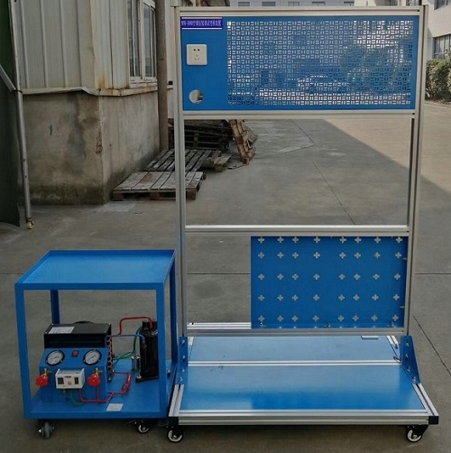 采用鋁合金框架作為實訓(xùn)平臺,外型美觀大方。支架結(jié)構(gòu)方便移動安裝,主要是家用分體式空調(diào)的安裝、維修、調(diào)試等實訓(xùn)操作提供一個很好的平臺。本裝置配有制冷劑回收設(shè)備,可對空調(diào)機中的制冷劑進行回收,回收的制冷劑可反復(fù)使用,這樣不但可以有效的節(jié)約成本而且可以保護環(huán)境。本裝置還配有便攜式焊炬,制冷工基本的維修工具,可使學(xué)生學(xué)習(xí)維修工具的使用和操作方法。使學(xué)生在走出學(xué)校后能真正學(xué)到實用的維修技能。本裝置適合制冷相關(guān)專業(yè)的初、中級技能實訓(xùn)考核與鑒定。