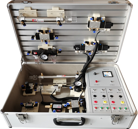 便攜式氣動(dòng)傳動(dòng)基礎(chǔ)實(shí)訓(xùn)箱是根據(jù)《液壓與氣壓傳動(dòng)》、《氣動(dòng)控制技術(shù)》等,是我公司根據(jù)各大專院校機(jī)電一體化對(duì)氣、電、液控制的教學(xué)大綱要求,氣動(dòng)與繼電器控制實(shí)訓(xùn)設(shè)備的優(yōu)點(diǎn),采用了開放型綜合實(shí)訓(xùn)箱結(jié)構(gòu),使氣動(dòng)原理與自動(dòng)控制理論得到有效的運(yùn)用,廣泛征求專家教授與老師的意見,經(jīng)不斷創(chuàng)新改進(jìn)研制而成。氣動(dòng)實(shí)訓(xùn)元件均為工業(yè)型元件。掌握幾十種基本實(shí)訓(xùn)回路的工作過程及原理。實(shí)訓(xùn)回路組裝快捷、方便。簡(jiǎn)單實(shí)用。