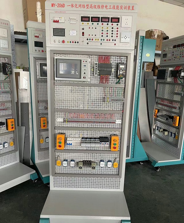 MY-206D 高級維修電工技能實訓(xùn)裝置是根據(jù)勞動和社會保障部頒發(fā)的"工人等級標(biāo)準(zhǔn)"和"職業(yè)技能鑒定"的要求而設(shè)計的,它適用于《初級維修電工》、《中級維修電工》和《高級維修電工》教材要求的電氣控制線路,通過裝置配備的PLC可編程控制器和變頻調(diào)速器及相應(yīng)實訓(xùn)模塊的訓(xùn)練,快速掌握課程要求的實際應(yīng)用技術(shù)和操作技能,具有針對性、實用性、科學(xué)性和先進(jìn)性,它能滿足技師技術(shù)及中、高級維修電工考核大綱的要求,是各勞動職業(yè)技能鑒定部門、大中專院校、技校中、高級維修電工技能考核的理想設(shè)備。