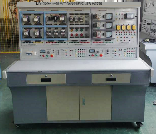 MY-209A 電工儀表照明實訓臺-是按照勞動和社會保障部頒發(fā)的“工人等級標準”和“職業(yè)技能鑒定”的要求而設計的,該裝置集理論、實際操作和考核鑒定為一體。可用于勞動職業(yè)技能鑒定部門、大中專院校、職校、技校對初、中、高級維修電工技能考核的理想設備。