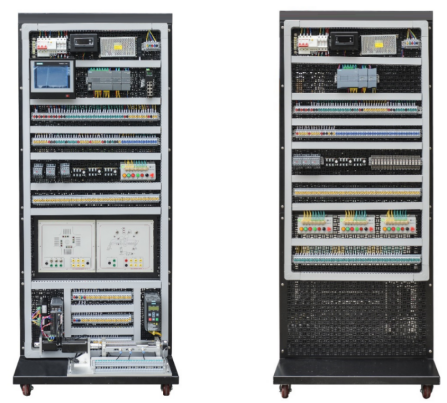 實(shí)訓(xùn)單元組成:網(wǎng)孔板實(shí)訓(xùn)區(qū)主要由電源單元、PLC單元、PLC學(xué)習(xí)箱單元、基礎(chǔ)實(shí)訓(xùn)單元、小車(chē)運(yùn)動(dòng)單元、變頻器單元等組成。