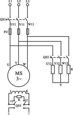 圖中同步電動(dòng)機(jī)制動(dòng)的原理:同步電動(dòng)機(jī)停車(chē)時(shí),如需要進(jìn)行