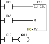 (1)CU為計(jì)數(shù)器的計(jì)數(shù)脈沖;R為計(jì)數(shù)器的復(fù)位;PV為計(jì)數(shù)器的預(yù)設(shè)值,取值范圍在1-32767之間。