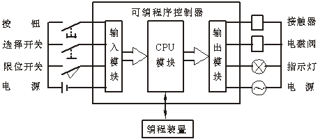 圖中電源是指為CPU、存儲器、I/O接口等內(nèi)部電子電路工作所配置的直流開關(guān)穩(wěn)壓電源,通常也為輸入設(shè)備提供直流電源。