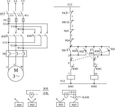 | SQ1、SQ2 | 行程開(kāi)關(guān) | LX19-111 | 觸動(dòng)復(fù)位 | 2 | |