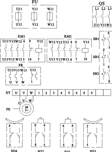 | SQ3、SQ4 | 行程開(kāi)關(guān) | YBLX-19/001 | 自動(dòng)復(fù)位 | 2 |