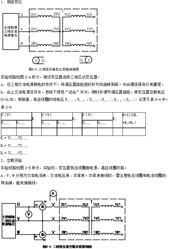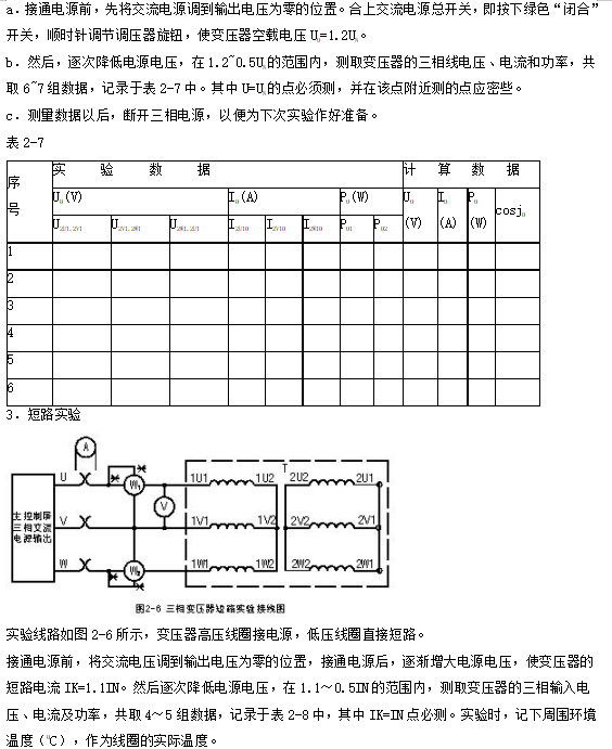 1.通過空載和短路實驗,測定三相變壓器的變比和參數。