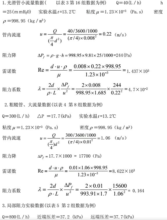 第二套:光滑管:管徑d-0.008(m) 管長(zhǎng)L-1.70(m) 粗糙管:管徑d-0.010(m) 管長(zhǎng)L-1.70(m) 真空表與壓強(qiáng)表測(cè)壓口之間的垂直距離h0=0.23m |