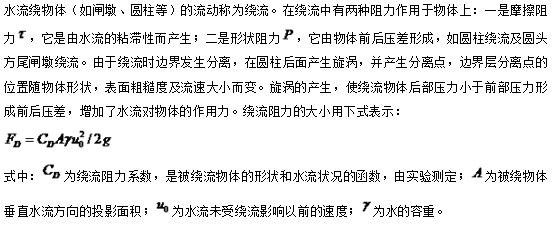 橋墩形繞流體為圓頭方尾的純體。水流脫離橋墩后,形成一個(gè)旋渦區(qū)尾流。在紊流區(qū)不斷交替在二側(cè)產(chǎn)生旋轉(zhuǎn)方向相反的旋渦,即卡門渦街。(可與圓柱體繞流比較)。