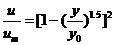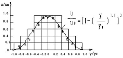 和無量綱坐標y/ y0;繪制無量綱流速分布圖,見圖11-4并和半經(jīng)驗公式(11-1)進行比較。