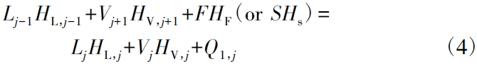 式中:Hi,j為i 在第j 級(jí)塔板上的焓值,kJ /kg;L 和V 分別為液相和氣相;Ql,j是第j 級(jí)塔板熱損失,kJ /h。