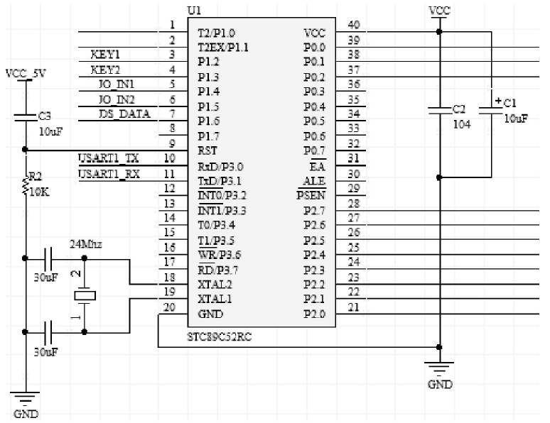 采用DS18B20溫度傳感器,低溫度系數(shù)晶振產(chǎn)生固定頻率的脈沖信號發(fā)送給計數(shù)器1,高溫度系數(shù)晶產(chǎn)生的信號作為計數(shù)器2的脈沖輸入。測溫范圍-55℃~+125℃,測溫誤差1℃。該傳感器有獨特的單線接口方式,和單片機連接時僅需一條線,即可實現(xiàn)雙向連接。該傳感器價格優(yōu)惠、響應(yīng)快,在使用中不需要外圍原件,且支持多點組網(wǎng)功能,最多可并聯(lián)八個實現(xiàn)多點監(jiān)測,在實驗室這種大型區(qū)域,可以及時監(jiān)測溫度變化,提高安全保障。