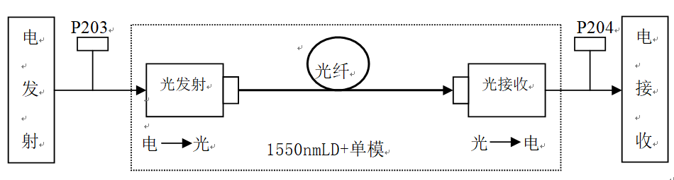 本實驗系統(tǒng)主要由兩大部分組成:電端機部分、光信道部分。電端機又分為電信號發(fā)射和電信號接收兩子部分,光信道又可分為光發(fā)射端機、光纖、光接收端機三個子部分。實驗系統(tǒng)基本組成結構(光通信)如下圖所示: