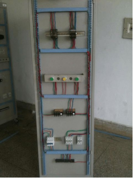 在長方體的控制柜連接我們的電路圖,要求工藝美觀,實習(xí)時我們組分工,因為電路比較復(fù)雜,需要熱仔細(xì)檢查,還要達(dá)到美觀的要求,必須有人設(shè)計線的連接方向,在分工下,每個人都各盡其責(zé),我們完成了線的連接。